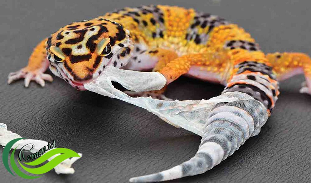 Ini karena leopard gecko hanya memiliki sedikit kandungan perekat lamel pada kakinya. Sebulan sekali leopard gecko akan berganti kulit. Satu atau dua hari sebelum ganti kulit, warna kulit leopard gecko itu akan berubah jadi abu-abu atau putih.