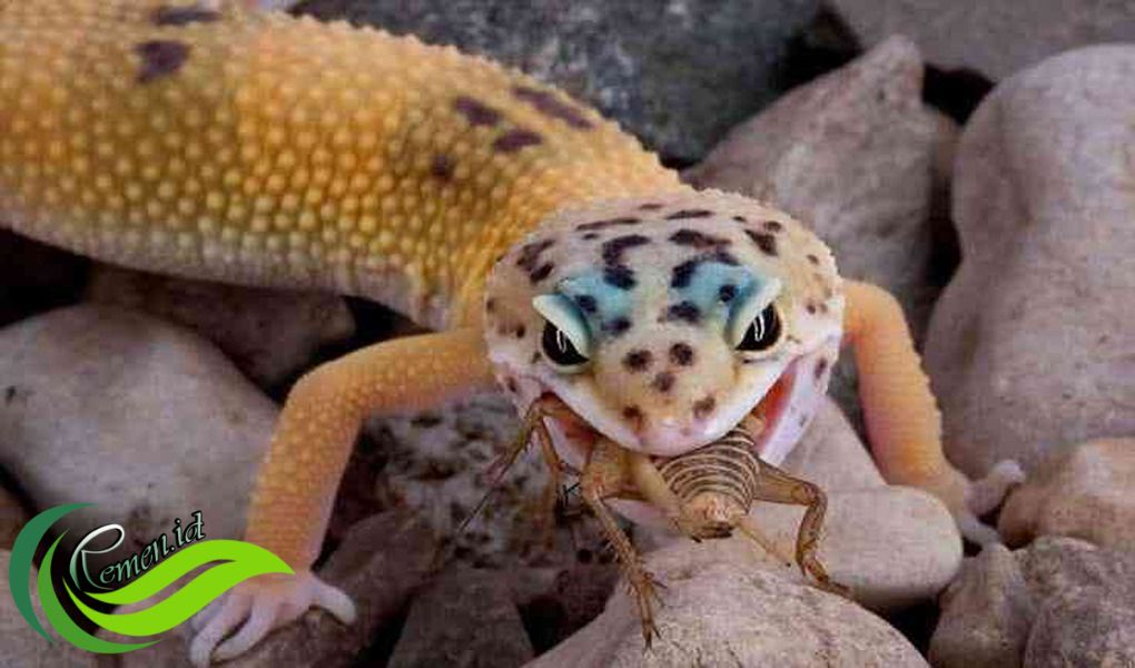Leopard gecko adalah pemakan serangga, seperti jangkrik, ulat hongkong, dan kecoa dubia. Gecko dewasa makan sekitar 7-10 ekor jangkrik per hari. Leopard gecko yang berusia di bawah 6 bulan harus diberi makan setiap hari, berusia 6-12 bulan setiap 2 hari sekali, dan yang berumur lebih dari 1 tahun bisa diberi makan setiap 3 hingga 4 hari sekali.